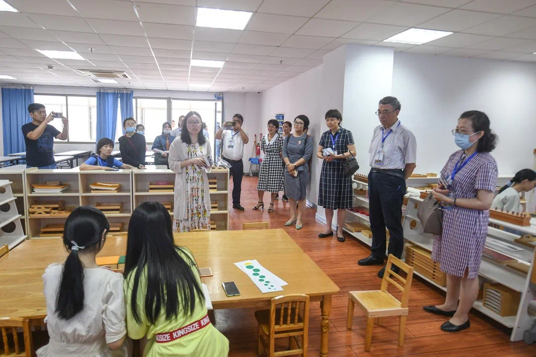 随后,专家组来到了北校区6号楼90直播 实验教学中心3楼,首先走访了奥尔夫教学法实验室。奥尔夫教学法实验室是以奥尔夫音乐教育体系为依托,为学前教育专业提供音乐教学、科研的基地。在实验室里,学院郑晓老师正带着同学们利用各种乐器感受音乐,氛围热情欢乐。接着,专家们又移步至蒙台梭利教学实验室,在实验室里,曹娟老师正带领同学们认真专注地使用着教具。实验室里的蒙台梭利教具包括感官教育教具、数学教育教具、语言教育教具、科学文化教育教具、日常生活教育教具及音乐教育教具等,学生在实验室里可以开展各种教学实践活动、为老师科研活动提供支撑平台等。专家组还对录音实验室、语言工作坊、书法工作坊、科学制作实验室、机器人实验室、自然科学实验室等进行了走访考察。李默老师和金建钰老师分别向专家介绍了书法工作坊的情况和自然科学探究室的情况。