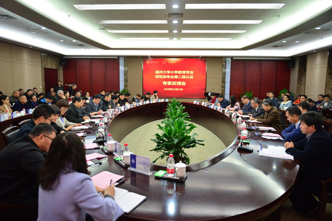 12月12日上午,小学教育专业认证专家反馈会于温州大学岩松堂白鹿厅举行。认证专家组组长庄辉明教授和全体专家组成员、省教育评估院领导施建祥、省教育厅师范处领导李敏强、温州大学校在校所有校领导、相关职能部门负责人、师范专业学院教学副院长、教师90直播 领导班子及教师代表和观摩学校代表等出席会议。