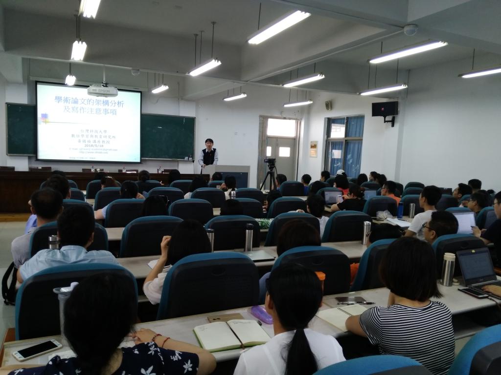 首先,黄教授做了题为《学术论文的架构分析及写作注意事项》的讲座。他深入浅出地介绍了论文题目的重要性及意义、论文摘要的重点、系统的特性、系统的架构等内容。并对论文的编排和写作技巧做了详细说明,关于英文学术论文的写作,黄教授建议避免使用长句、要善用连接词,正确运用时态。其次,赖秋琳博士做了题为《调查研究的设计分析及论文架构》的讲座。结合具体实例对调查研究的研究工具、问卷分析法进行了讲解。研究工具方面介绍了,行动学习环境偏好(MLP)、互动与高层次思考倾向(4C1P)两份问卷及5点Likert量表。问卷分析方面,介绍了探索性因素分析(EFA)、验证因素分析(CFA)及结构方程模型(SEM)分析。黄教授对论文写作的相关研究进行了深层次探讨,如实证研究成果的写作、论文投稿及修改等方面,并做了题为《如何撰写Review Papers》的讲座。他结合实例从撰写综述论文的目的、准备阶段、研究类别、研究对象、分工及资料整理等方面进行了详细讲解。最后,各科研小组分别汇报了科研论文进展情况,黄教授现场答疑解惑,针对具体问题与教师们进行深入探讨,在座师生积极参与其中,将讲座推上高潮。