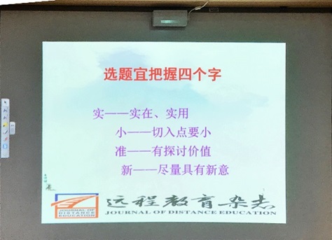 《远程教育杂志》主编陶侃教授以其多年的审稿经验,高瞻远瞩地为90足球直播网 师生的教育研究学术论文的写作分别从选题、摘要、文献综述、研究方法、结论等部分的撰写做了针对性的指导。在对话中,陶主编对如何写好论文总结了五大功夫,指导90足球直播网 师生若要写好论文需要练就“选题功”、“搜索功”、“整合功”、“写作功”及“投稿功”等五大内功,并形象生动地用通俗易懂的生活经验告诉90足球直播网 师生写好论文需要具备如“骗子般的创造力”、“钓鱼者的定力”、“摄影师的眼力”和“厨师的手艺”等,即写好论文需要不断创新,对于选定的主题需要执着追求深入,洞察学术动态,善于把已有的研究数据和材料以符合读者口味和期刊风格来组织撰写文章。 《远程教育杂志》主编的一席话,通俗易懂地指导90足球直播网 师生如何开展教育研究学术论文的写作,在座的师生受益匪浅,并指导我们如何选择投稿时间点问题。