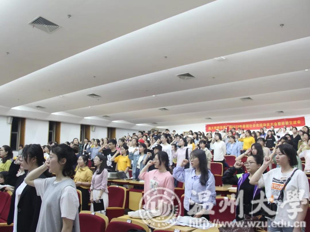 在社会实践中,自身安全也十分重要。学生科辅导员吴超智也在大会中做了实践安全宣讲,她说道,同学们要以预防为主,安全第一。在实践过程中必须要注意出行安全、财物安全及人身安全,给自己留下满满的收获、成长和回忆。接着,携手童真实践队队长林瑞带领大家进行宣誓,教院学子满怀激情,流露出对暑期实践的无限期待。