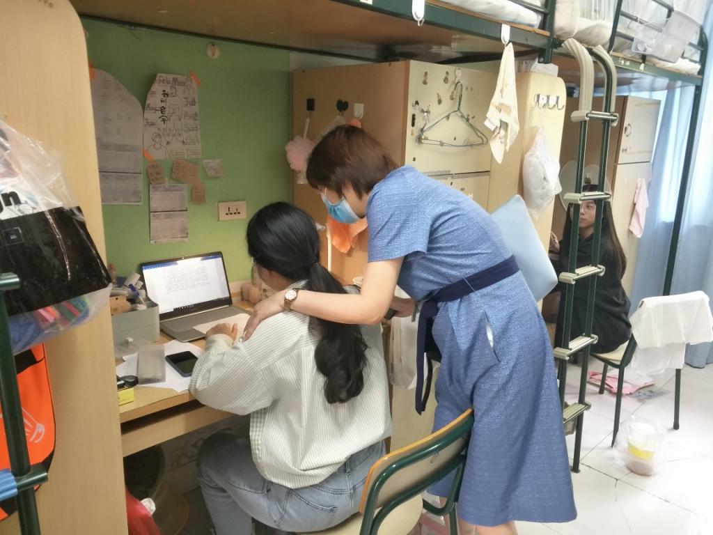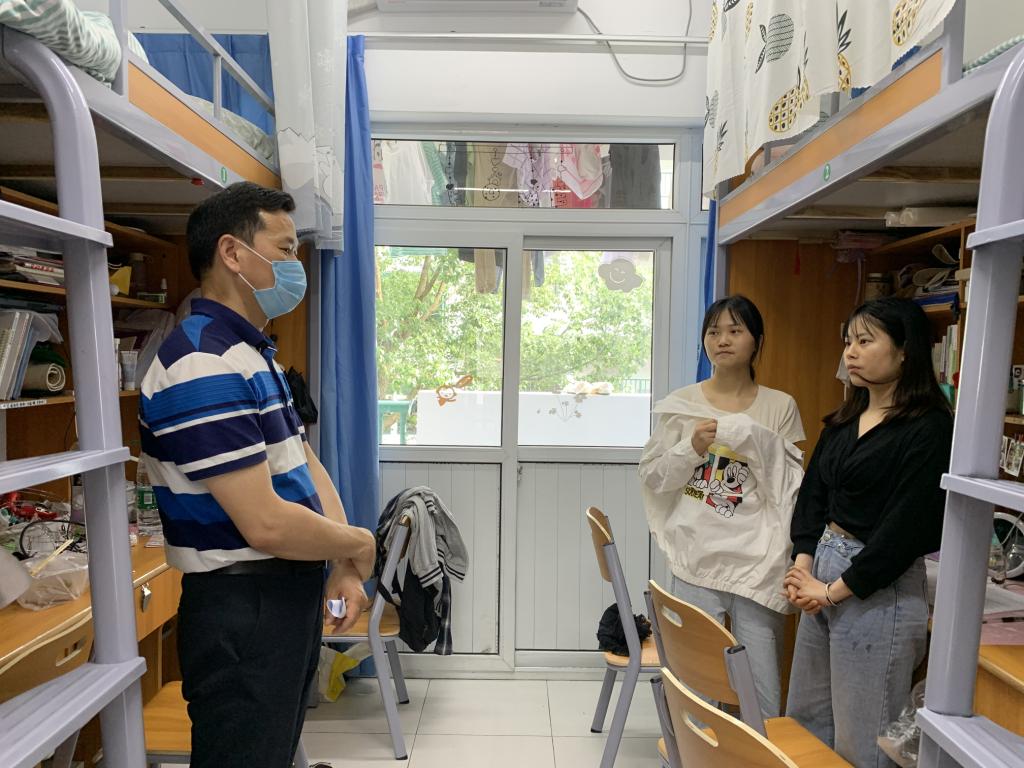 在走访过程中,孙芙蓉院长逐个寝室询问学生们是否适应返校生活,身体有无不适,并就防疫方面与返校学生展开详细交流,叮嘱学生每天进行测量体温,坚持健康打卡,携手抗击疫情。在了解学生的课业情况后,她激励同学们快速调整心态,以良好的精神面貌投入日常学习。同时,耐心的告知学生们可随时向学院反映生活与学习中遇到的困难,学院将为学生的学习、生活和成长提供贴心的帮助与坚实的保障。最后,孙院长指出期末临近,希望学生们能够自我调节疫情的影响,以优异成绩为本学期的学习画下圆满的句点。