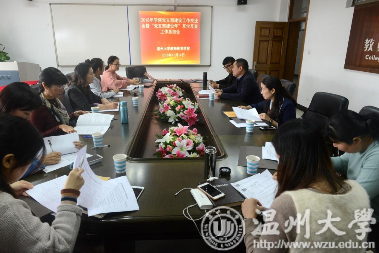 11月14日下午,教师90直播 于南校区9A410会议室召开2018年党支部建设工作交流会暨“党支部建设年”互学互查工作总结会,学院党委委员及各支部负责人、党务办公室及宣传工作办公室负责人参加了本次会议,会议由杨立淮书记主持。