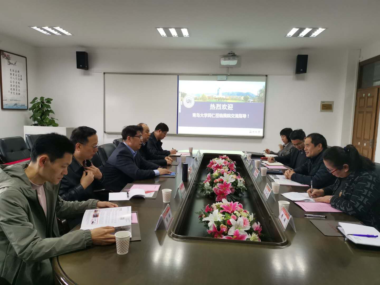 4月5日上午,青岛大学技术系主任李国建带队一行5人来访90足球直播网 。杨立淮书记致欢迎词,并介绍了学院情况。教育技术系主任杨刚、小教系书记刘海霞、办公室主任黄玮、教务科科长章园园参加了座谈会。双方就师范专业认证、专业建设和实验室建设进行了热烈的交流。