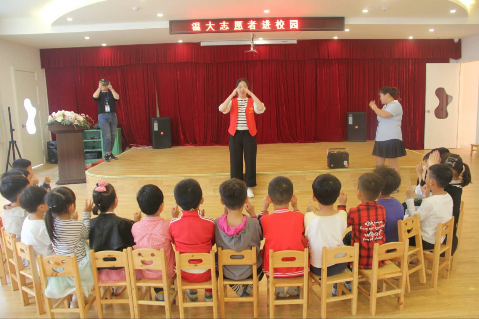 2018年4月28日下午,温州大学教师90直播 组织志愿者们赴兰里幼儿园,开展“爱心进社区,志愿与童行”授课活动。志愿者们一共准备了5个有趣的节目,内容涉及“消防安全教育”、“歌唱学习”、“诗歌朗诵”和“手指操”等,小朋友们的积极配合和热情投入让本次活动最终取得了圆满的成功,呈现出一派欣欣向荣、其乐无穷。