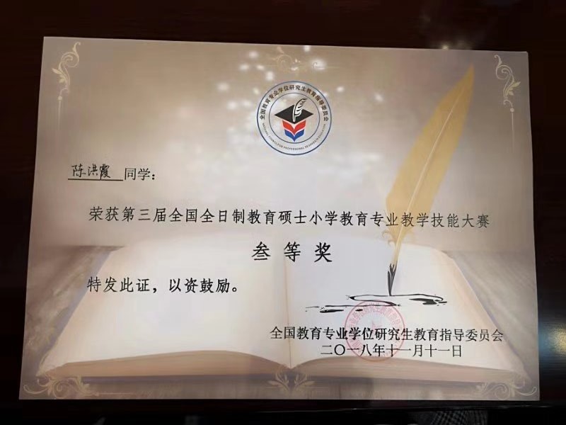 11月9日至11日,全国第三届全日制教育硕士小学教育专业教学技能大赛(决赛)在贵州师范大学顺利举行。本次比赛由全国教育专业学位研究生教育指导委员会主办,贵州师范大学承办,旨在展示全日制教育硕士的培养成果,促进院校之间的相互交流,不断提高小学教育专业教育硕士研究生的培养质量。