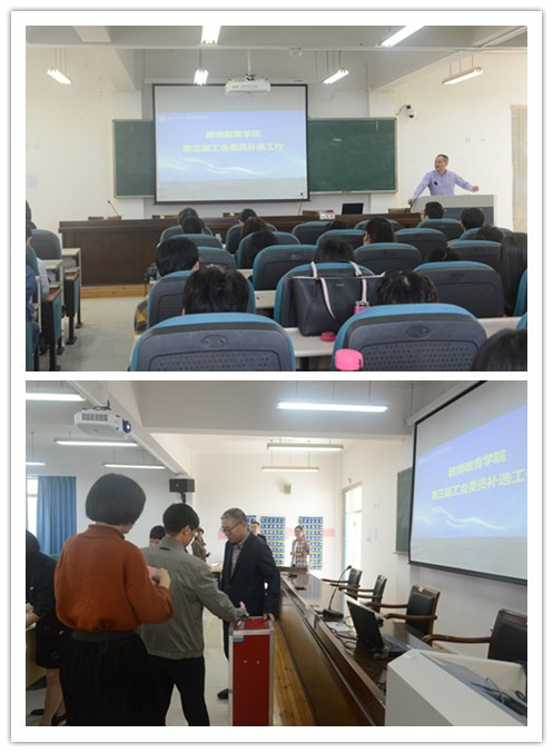 因为人事变动和调整,大会根据增补学院工会委员会主席及委员工作方案,通过大会选举,崔冠宇、谭莉、潘士杰等三位同志增补为第三届工会委员会委员。增补委员后,召开学院工会委员会会议,选举陈铿同志为学院分工会主席,并就学院工会委员会委员分工进行了调整。