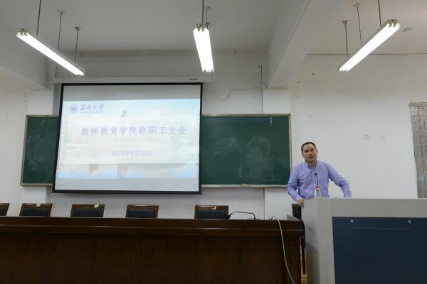 4月25日下午,90足球直播网 在南校区9C301召开全体教职工大会,学院全体教职工及部分研究生党员参加,杨立淮书记主持。本次会议议程主要包括新教师入职仪式、学院2018年全面从严治党工作会议暨“党支部建设年”工作部署会以及师德师风专题学习。
