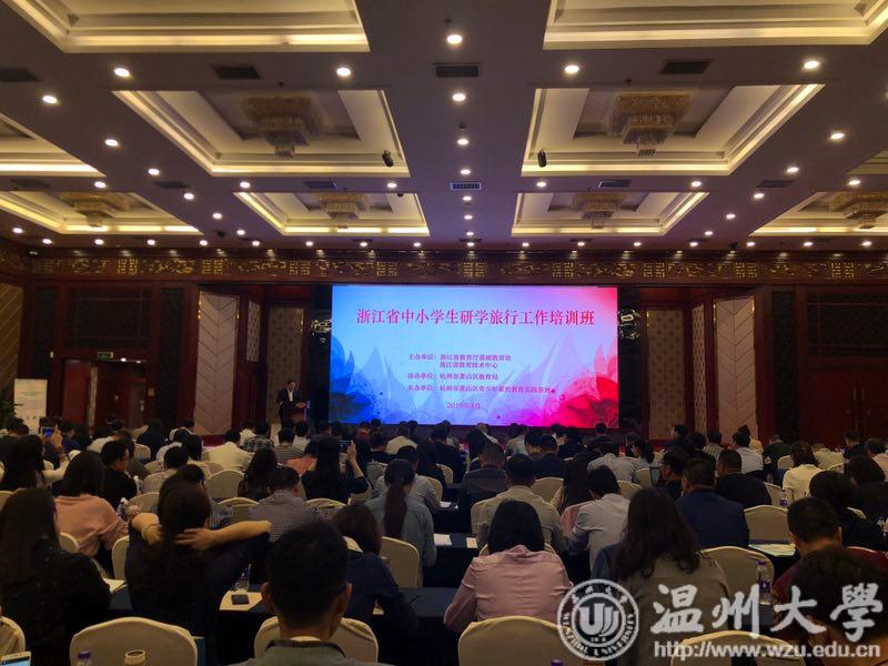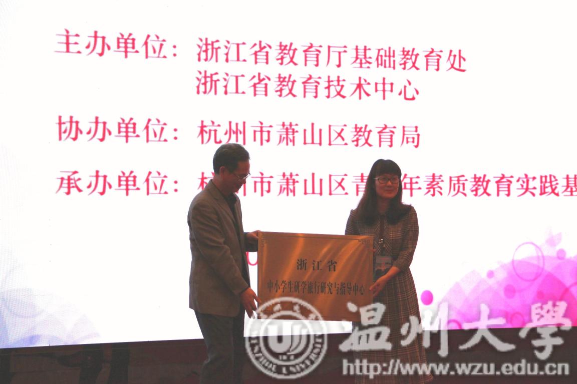 2019年4月9日,浙江省中小学生研学旅行工作培训会在杭州举行。在会议开幕式,浙江省教育厅为温州大学“浙江省中小学生研学旅行研究与指导中心”授牌,温州大学教师90直播 院长孙芙蓉作为中心主任代表温州大学上台接牌。