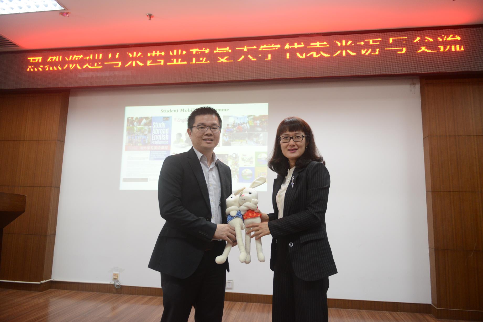 2018年11月30日上午9:30,马来西亚拉曼大学国际处处长Dr. Lai Soon Onn来90足球直播网 洽谈国际教育合作事项,并参观了90足球直播网 教师教育实验中心。学院领导孙芙蓉院长、潘玉进副院长、院长助理杨刚博士以及各系主任、骨干教师在岩松堂展示厅出席并召开了这次会议。会后,院长孙芙蓉教授代表学院向马来西亚拉曼大学国际处处长Dr. Lai Soon Onn赠送礼物,并集体合影。