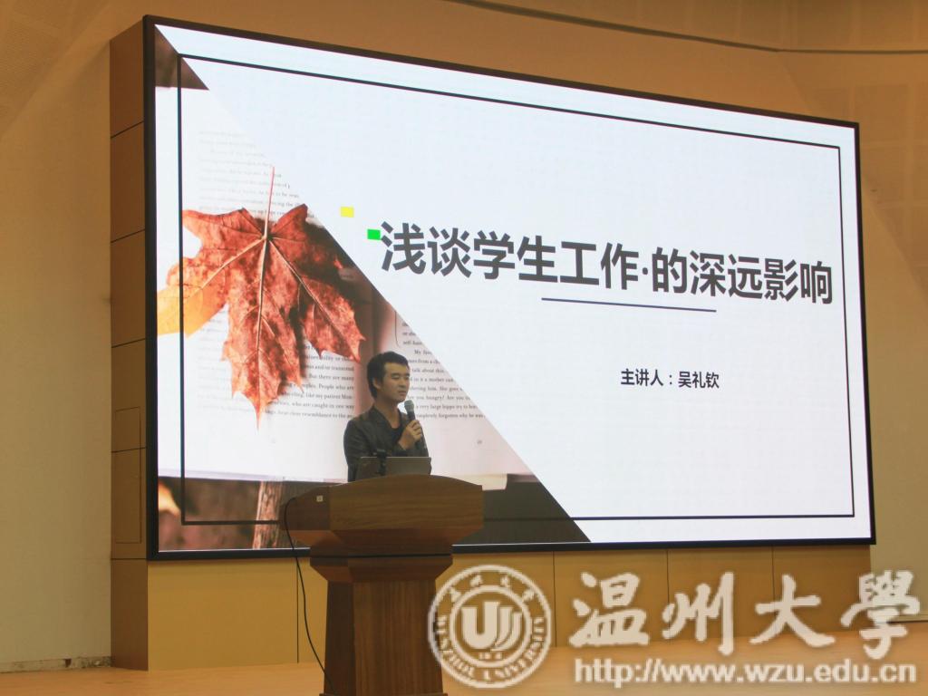 为进一步提高团学成员综合素养,2018年10月28日,温州大学教师90直播 团员骨干培训之“艺”讲座于九号楼报告厅举行。