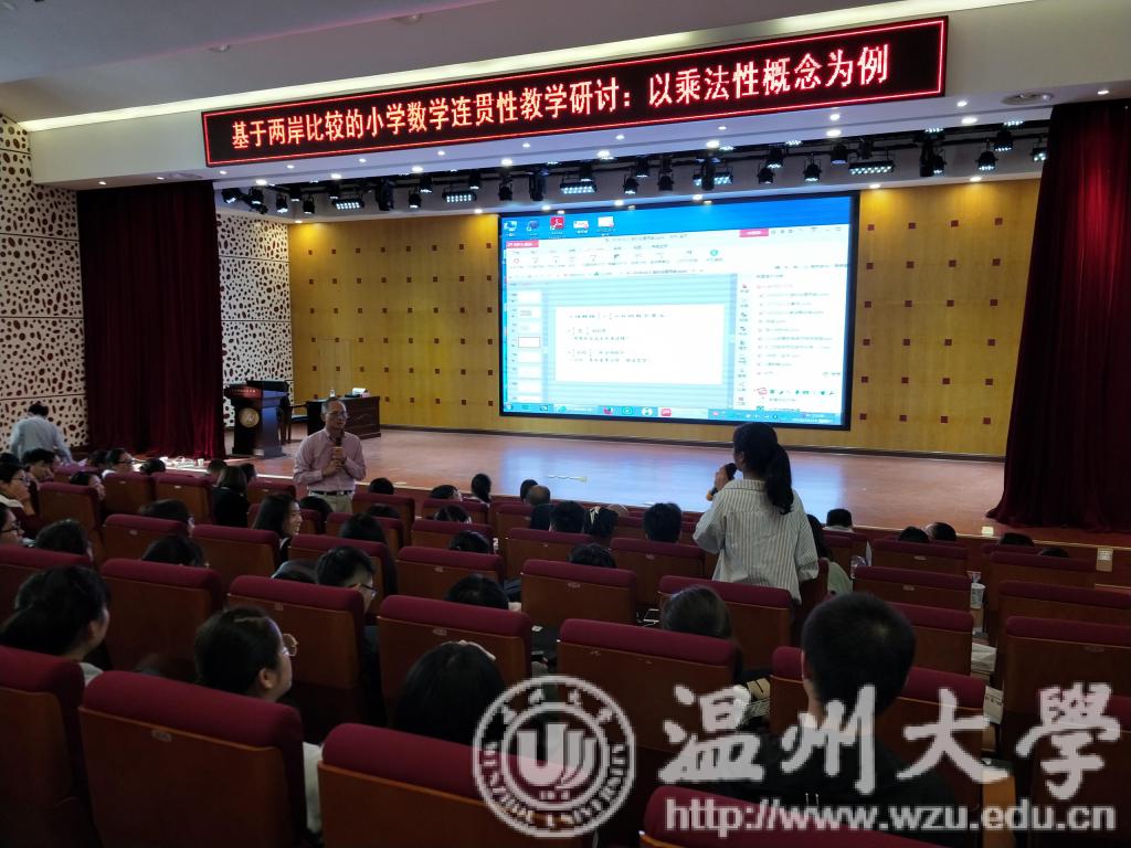 10月24日下午,台湾国立嘉义大学刘祥通教授在温州大学附属小学报告厅就《基于儿童思维,拓展学生数学能力》这一议题开设讲座。本次讲座为基于两岸比较的小学数学连贯性教学探讨的一个环节。温州大学17级小教系的全体同学聆听了本次讲座。