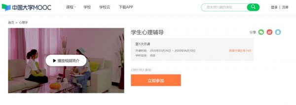 在疫情防控的特殊时期,为响应教育部“停课不停学”的号召,近日,90足球直播网 推进《学生心理辅导》课程入驻中国大学MOOC平台开课,积极将优质慕课资源向社会公众和校内外学生免费开放,助力战“疫”。