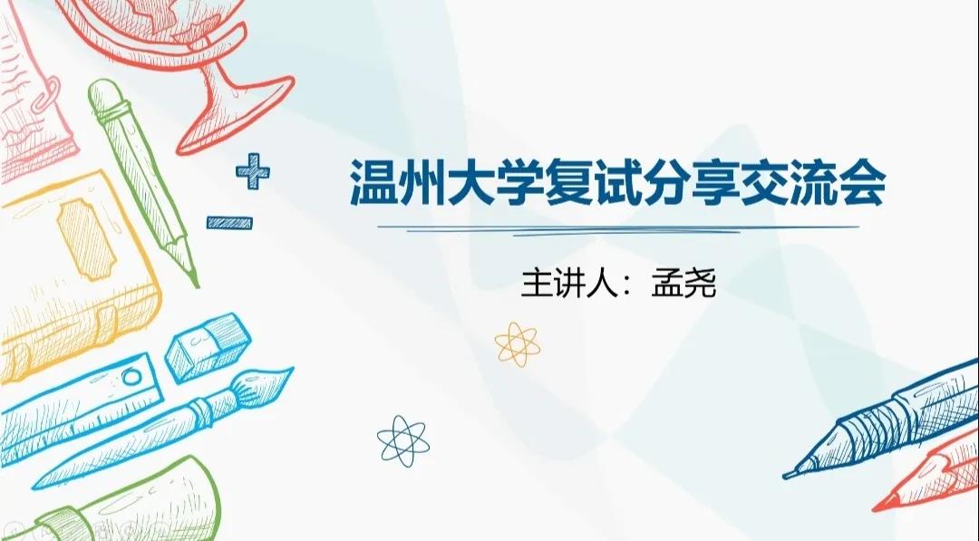 活动伊始,孟尧从复试、调剂、温大、读研四个角度切入与同学们分享了她在考研路上的经验和收获,她向同学们强调:“主动出击,提前沟通,扎实准备,机会总是偏爱有主动的人。”并就考研复试流程、调剂情况等方面的问题与大家进行了交流。