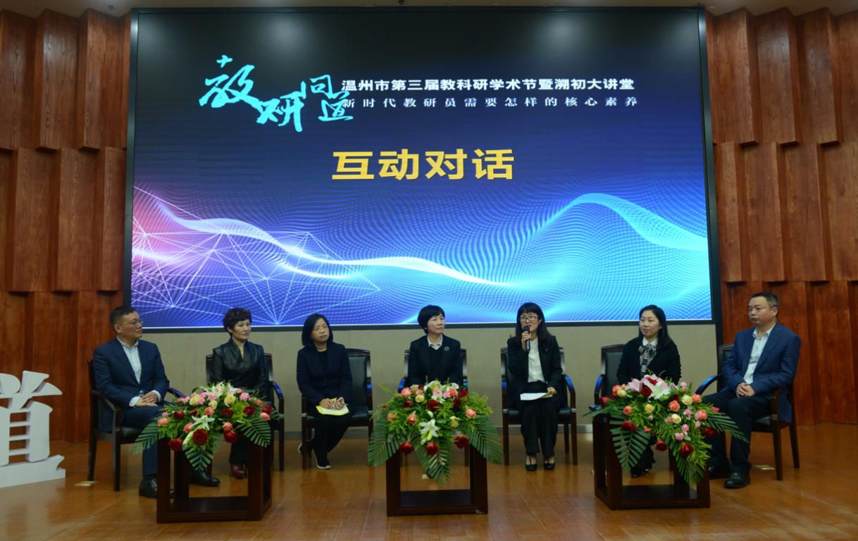 据悉,本次温州市第三届教科研学术节暨溯初大讲堂共分四大专场:问道·教研之人:研教员TED演讲;问道·教研之术:分享教研亮点;问道·教研之学:分享研究成果;互动对话等,温州地区25余位教育专家、名师教研员分享关于“区域中小学P2P教科研项目的实施与管理”、“基于移动APP技术的全市高中学与教诊断”、“‘一题一课’教学教研一体化的实践研究 ”等主题研讨。在会上温州市教育局党委委员、副局长王剑波肯定了近年来温州教育科研所取得的成绩,并希望以此次科研学术节暨溯初大讲堂为契机,建立起良好的沟通渠道,为我市教育的共同探索、共同发展奠定坚实基础。