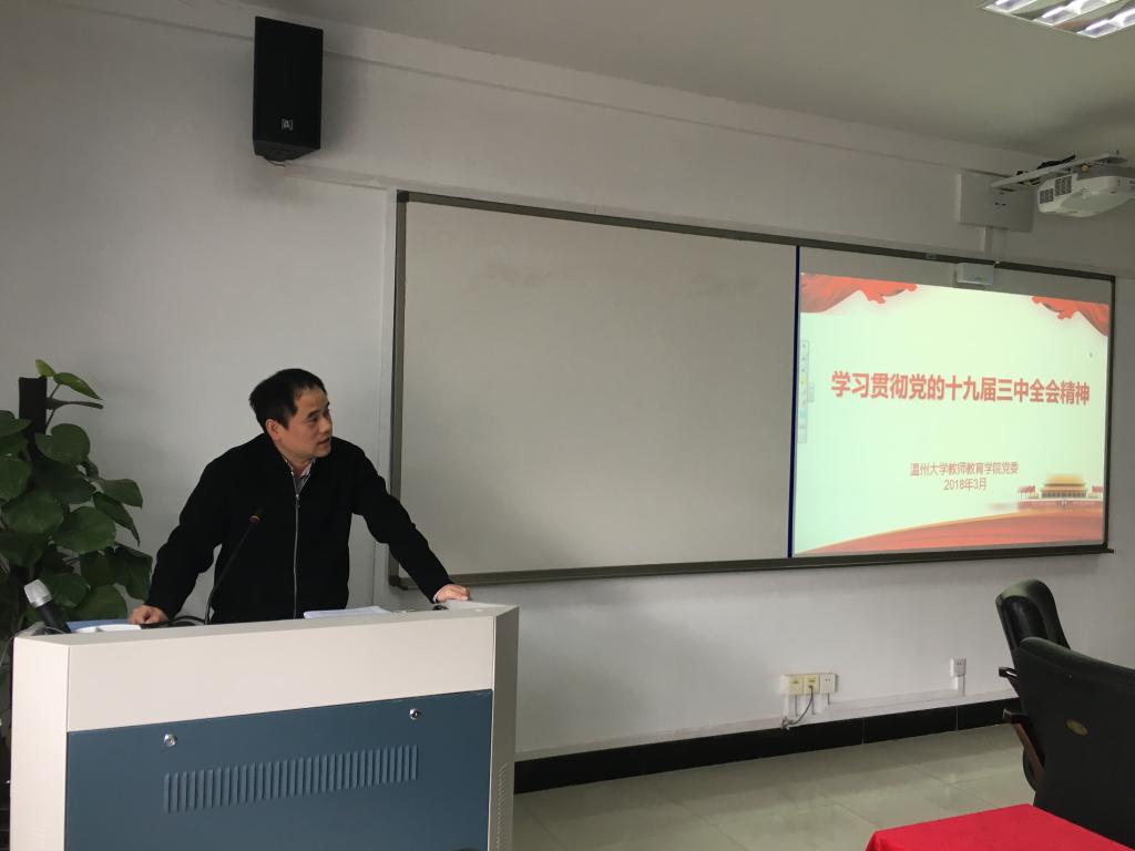 会议组织了政治理论学习。杨立淮书记为与会人员作“学习贯彻党的十九届三中全会精神”和2018年全国两会精神的辅导报告,同全院教职工及党员同步学习、同步领会党的十九届三中全会精神。杨立淮书记对这次大会的主题、大会议程、会议重要意义等方面进行了概述,并对习近平总书记的重要讲话进行了认真解读,强调了“六个深刻认识”,指出党的十九届三中全会明确了坚持党的全面领导的改革原则,做出了完善坚持党的全面领导的制度的重大部署,提出了统一思想、统一行动、锐意改革,确保完成深化党和国家机构改革各项任务的明确要求。他还指出,2018年全国两会,是新时代召开的一次极为重要的会议,是一次高举旗帜、维护核心,统一思想、凝聚伟力,继往开来、奋发前进的历史性盛会。全国两会期间,习近平总书记发表了一系列重要讲话,高屋建瓴、精辟深邃,内涵博大、主旨鲜明,是对党的十九大精神的丰富和深化,是指引我们做好工作的重要遵循。全国两会审议通过的各项工作报告,以及宪法修正案、监察法和《国务院机构改革方案》,我们要认真组织学习并贯彻落实,努力奋斗,推动学院各项事业发展。