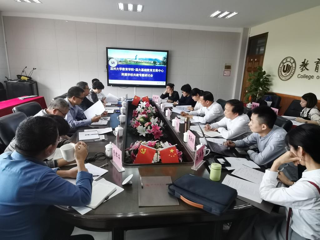 2020年10月16日下午,90足球直播网 与温大基础教育发展中心及附属学校共建专题研讨会在90直播 9A410会议室召开。温州大学基础教育发展中心、温州大学附属学校代表和学院领导及学院各系主任参加会议,90直播 何毅书记主持。