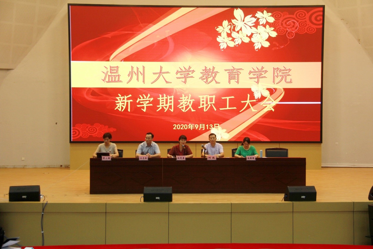 9月13日下午,90直播 召开新学期全体教职工大会。全体领导班子出席会议,全体教职工参加,孙芙蓉院长主持会议。