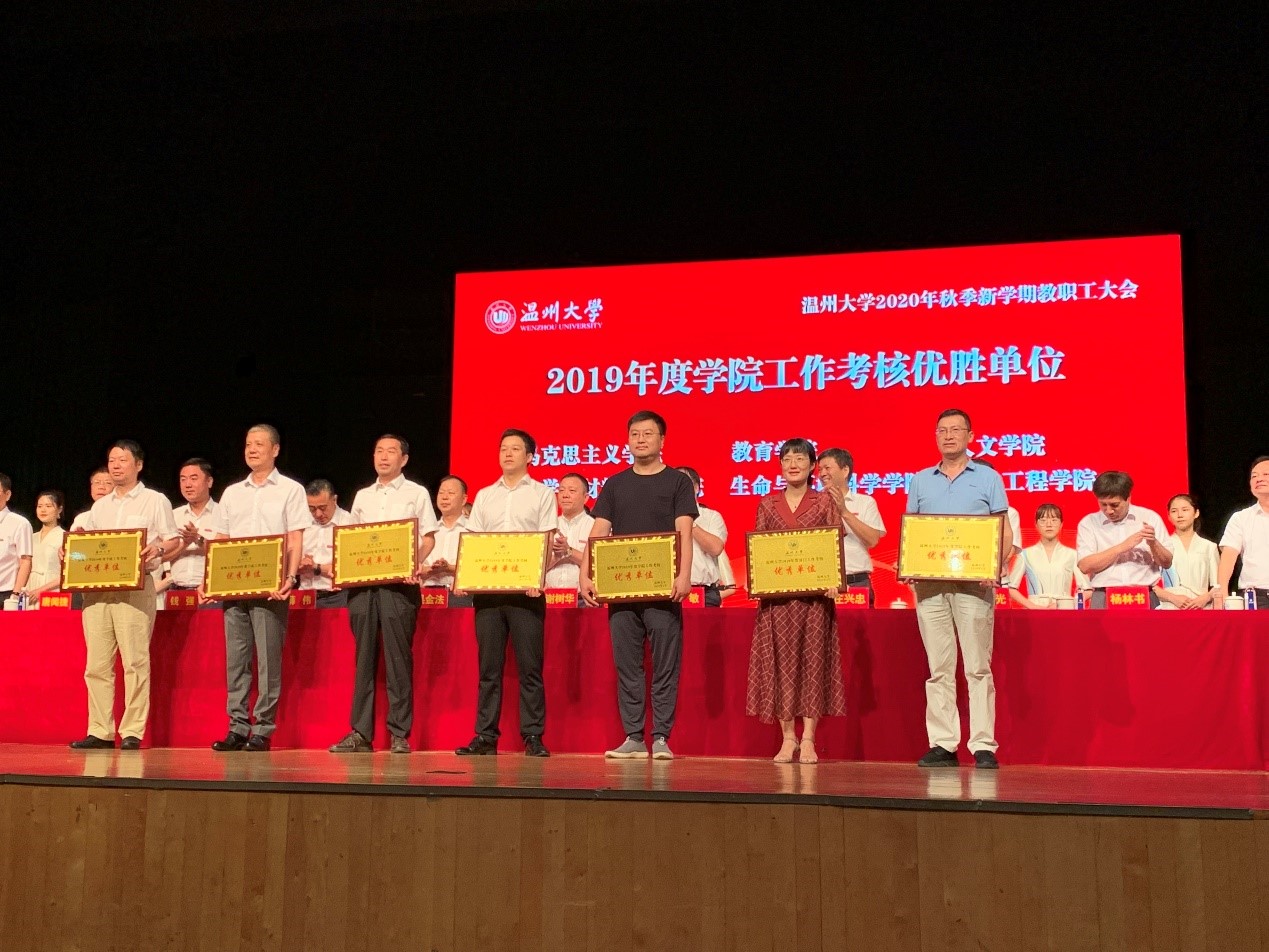 在90足球直播网 领导班子的坚强带领下,全院教职工团结奋进,努力拼搏,2019年度取得了可喜成绩,在表彰大会颁布的各大奖项上90足球直播网 实现全面丰收,既有分布广泛的个人单项奖,也有份量很重的多个集体荣誉奖。其中,学院年度工作考核居全校第二名,获得考核优胜单位;学院党委获批首批浙江省高校党建“双创”工作培育创建单位,获首批高校党建“标杆院系”培育;小学教育专业获批国家一流专业建设点,成为8个国家一流建设专业之一;学前教育专业获得温州大学2019年最具就业竞争力专业薪酬单项奖;学院陈旭微、李伟老师被评为步青教学卓越奖-“教学名师”,曾越老师被评为步青教学卓越奖-“教学新秀”,杨刚、邓纯考老师被评为2019年度温州大学优秀教师,陈强龙老师被评为优秀教育工作者,金建钰老师被评为优秀班主任,潘士杰老师被评为优秀辅导员,孙芙蓉老师被评为优秀共产党员。