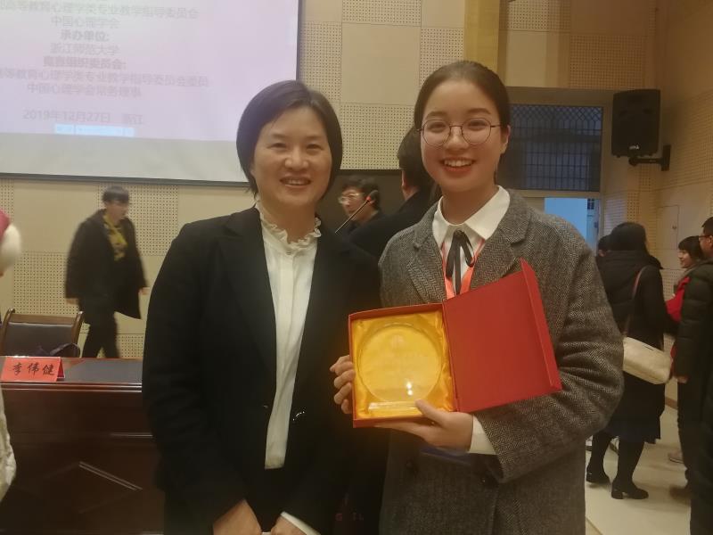 此外,在刚刚过去的浙江省第十三届师范生教学技能竞赛中,温州大学应用心理学专业也取得了历史性突破。16级卢颖同学荣获一等奖,夏政鑫同学获二等奖,这个成绩是全省心理学类专业在共13届比赛中的最好成绩,也是全省心理学类专业首次在省师范技能竞赛中获得一等奖。