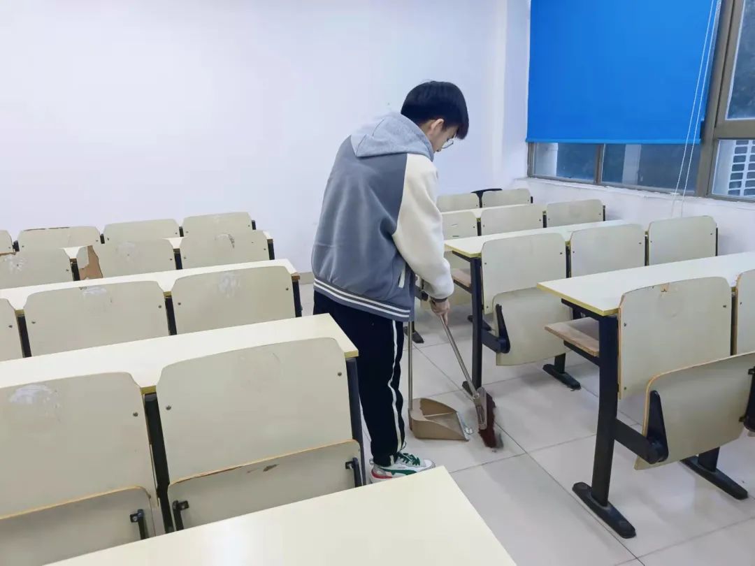 随后,学院组织师生开展了“师生劳动 共创美好”的劳动大扫除活动。师生们在各自劳动责任包干区积极投身劳动实践,筑成了一道最靓丽的风景线。