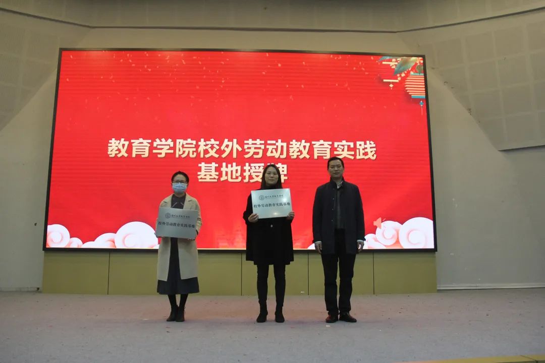 学院党委书记何毅为温州市少年宫、温州大学城附属学校两家劳动教育实践基地代表授牌。为探索“产、学、研”一体化大中小学劳动教育融合机制,构建“五育融合、学段贯通、校内外联动、家校社协同、高效保障”的劳动教育实践模式,也为90足球直播网 学子提供更多校外劳动实践机会,学院与温州市少年宫、温州大学城附属学校等多家单位签订了校外劳动教育实践基地合作协议。今后,签约双方将在“平等自愿、互惠互利、优势互补、共同发展”的原则指导下,共建校外劳动教育实践阵地,共同探索构建新时代劳动教育路径。