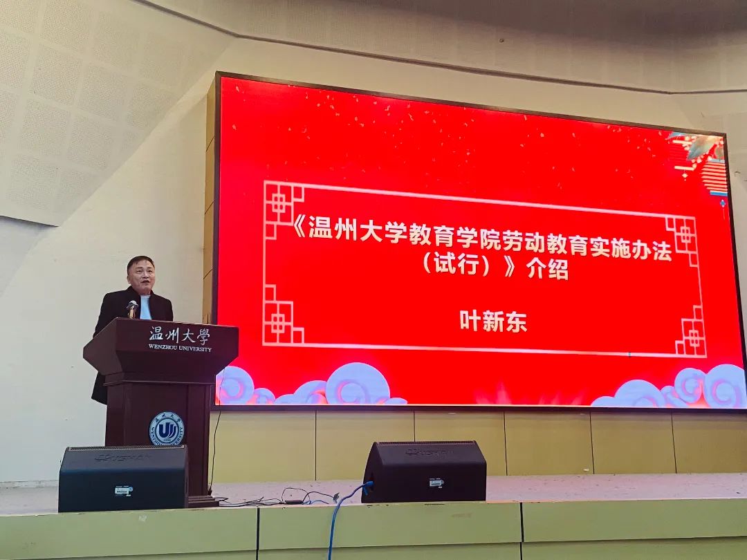 学院副院长叶新东详细解读了《90足球直播网 劳动教育实施办法(试行)》。学院劳动教育实施办法突出劳动教育“三融入”,即将日常生活劳动、专业实践劳动和劳动理论课程三个部分有机衔接,通过明确劳动教育内容,建设理论与实践相结合的劳动教育必修课程,实施课内与课外一体化的劳动教育实践体系,汇聚校内与校外结合的劳动教育实践资源,从而引导大学生树立正确的劳动观念,提升劳动能力,涵养劳动精神,全面推进大学生劳动教育,努力构建“五育并举” 的人才培养体系。