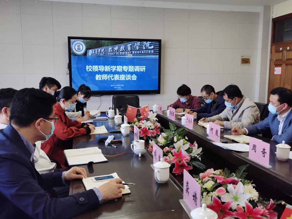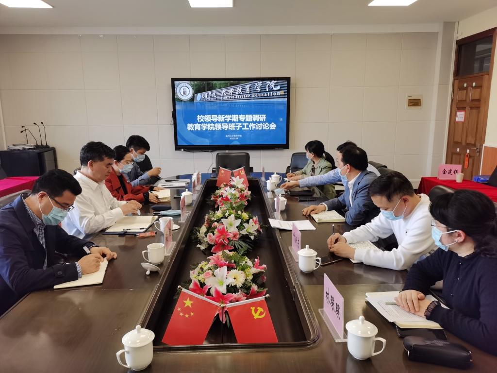 随后,徐和昆副校长参加了学院领导班子工作讨论会。学院领导班子分别就学院申博工作、师范教育特色打造、服务地方、学科科研、学前专科等方面工作进行了汇报。徐和昆副校长指出,90直播 各项工作围绕学校主题主线,全院上下奋力拼搏,取得了显著成绩,希望2022年学院再接再厉、不怕困难,推动学院高质量内涵式发展。