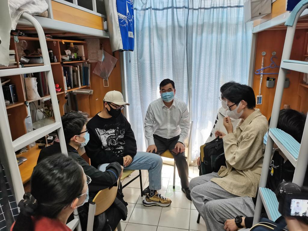 徐和昆副校长一行走访慰问90足球直播网 学生寝室,与学生进行了面对面交谈,了解学生的生活学习状况,勉励学生珍惜时光努力学习。