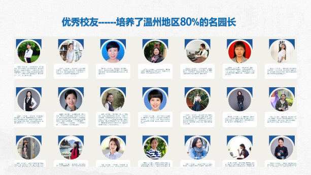该专业现有44位教师,其中有10位博士,5位教授,22位副教授,均有与幼儿园一线合作的经历。同时,作为浙江省教师教育重点培养基地和温州市幼儿园园长培养基地,每年承担的各级各类幼教培训项目50 余项,受益人员 6000 人次。组织与承办学术会议影响力大,如2021年11月27 日-29日主办的纯公益的中国教育学会学前教育专业委员会 2021年学术年会暨第三届学前教育质量评价与提升学术论坛,仅线上访问量就超过26万人次。温大幼教人正在用其行动影响和提升幼儿园教育质量,助力更多幼儿教师的发展。