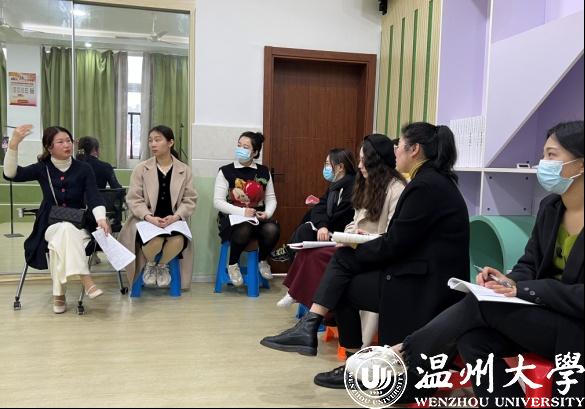 教学研讨活动由林琛琛副院长主持,林院长介绍本次教学研讨是以温州幼师的“课堂教学研讨半月谈”为平台,将课堂作为主阵地,开展三校联动的特色教研活动。前期邀请90足球直播网 彭小明教授为前三教学点的教师做了《从课程思政走向专业思政》的专题讲座,在教育理念上打开了新的思路。今天教研活动的主题为《课程思政视域下职业嵌入式课堂之教·学·听·评》,活动形式主要包括分组听课与评课、集中汇报与研讨。另外,分组开展中本一体化人才培养方案修订研讨活动。