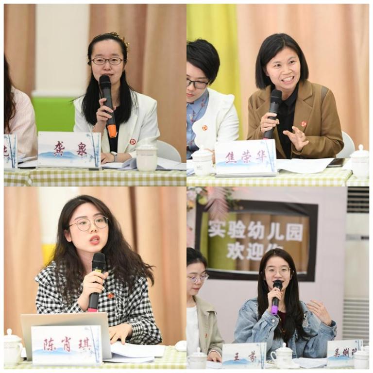 温州大学学前教育系书记龚泉博士认为区域五色课程不是颜色的拼盘,而是要将教研的力量和已有的课程资源联动起来,推动全县五类课程的建设,需要发挥各种颜色的幼儿园之间合作共享的力量。温州大学学前教育系教师焦荣华博士在课程文本中看到了文成县实验幼儿园对数字的敏感性,强调推动家庭、社区和幼儿园之间儿童友好模式的建设。在参观园所后,焦老师看到了园所环境中蕴含着吴园长的办园理念,深深感受到现代化指的不仅是科技的现代化,更包括教育理念的现代化。温州大学学前教育系陈肖琪老师主要分析了各公办园对应的五色课程,发现区域力量分布不均衡,建设金色课程的幼儿园居多,而致力于建设紫色侨文化课程、蓝色畲族课程与红色革命课程作为体现文成县特色的课程却较少。温州大学学前教育系研究生吴俐瑶同学也从细节处入手,对文成县实验幼儿园“悠·品”课程实施方案提出了自己的想法与建议。