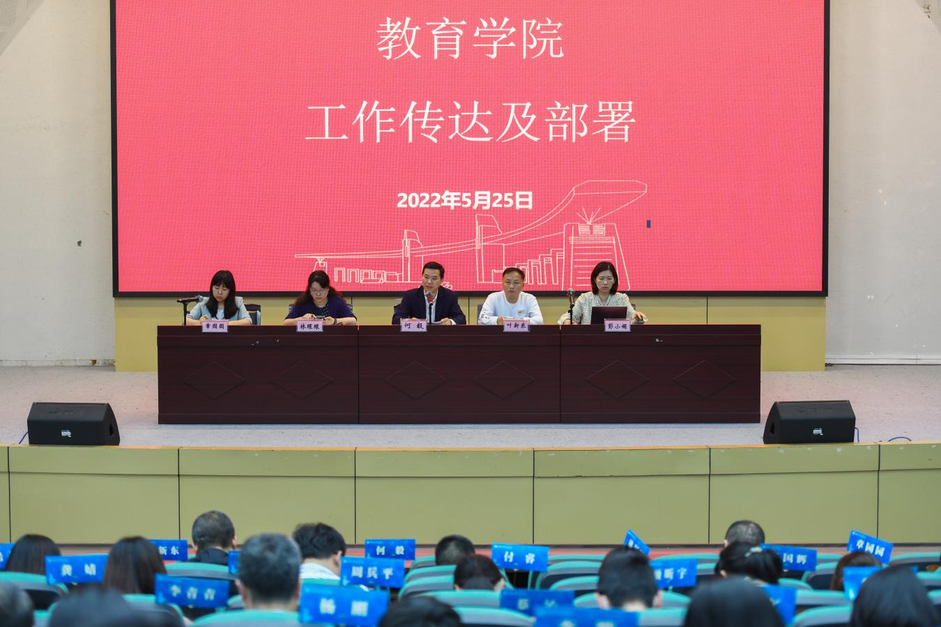 2022年5月25日下午,90足球直播网 在一楼报告厅召开教职工大会,学院全体教职工参加。会议由学院党委书记何毅主持。