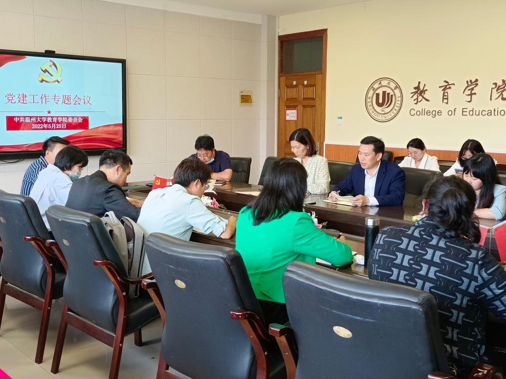 彭小媚副书记强调,要做实教工党支部与学生党支部结对工作,学生党支部主动联系教工党支部,开展各种特色活动;要做好节能校园、绿色校园创建工作;要继续推进高知识群体的政治引领和政治吸纳工作;要持续强化党员理论学习,用好温州大学党支部数字化管理平台。