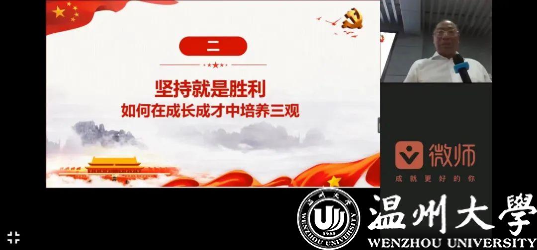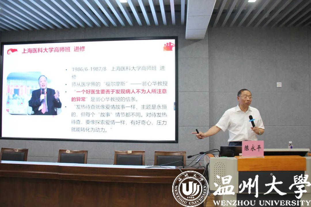 《形势与政策》课是高校学生思想政治教育的重要内容,是高校思想政治理论课的重要组成,是帮助大学生正确认识新时代国内外形势,深刻领会党和国家事业取得的历史性成就、发生的历史性变革、面临的历史性机遇和挑战的核心课程。为全面贯彻落实习近平总书记关于劳动教育重要论述精神,深入推进新时代劳动教育实践,有力落实“五育并举”理念,2022年6月9日晚上,90足球直播网 联合外国语学院采用线上和线下相结合的形式开展以“弘扬劳模精神,坚守平凡岗位”为主题的《形势与政策》课暨劳动教育专题讲座。全国劳模、温州医科大学附属第一医院肝病诊治中心主任陈永平教授担任本次讲座的主讲人,学院党委副书记章园园、学工办辅导员孟江龙一同出席了本场报告。