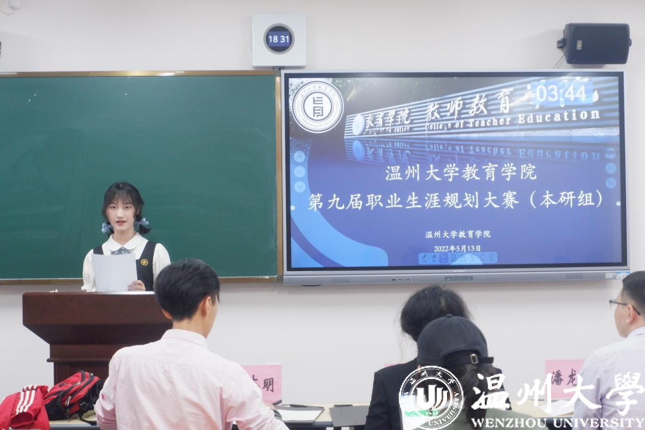 活动伊始,主持人为大家介绍此次答辩的流程。此次大赛答辩仅设A类,由主题陈述,现场答辩两部分组成。每位选手从自我认知、环境分析、职业决策、实施计划、评估调整等方面进行全面阐述,展示了少儿电视台记者、侨童汉语教师、少先队辅导员等理想职业。评委老师们则根据选手们的理想职业进行针对性提问。选手们回答时自信的身姿,展示了教院学子们善于思虑,敢于创新的精神。