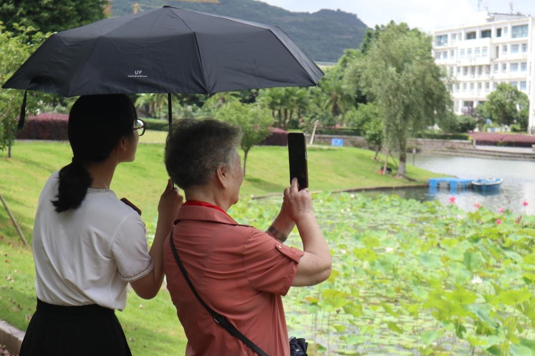 老党员们在学生党员的陪伴下参观了美丽校园,从90直播 到明心湖,从明心湖到国旗广场,校园熟悉而美丽的景色唤起了老党员们心中的回忆。