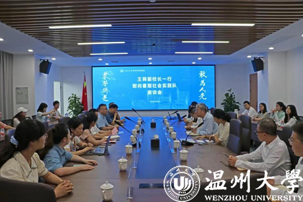 最后,王舜副校长对实践队的调研工作表示认同和鼓励,并对大学生创新创业、培养人才服务地方表示大力支持,对暑期社会实践活动就安全出行、服务社会、知行合一等方面提出建议和要求,希望同学们将自己所学知识服务于社会发展,在实践中壮筋骨,长才干,全方位展示温州大学青年学生的风采。此次座谈会,双方建立长期、紧密的合作关系。
