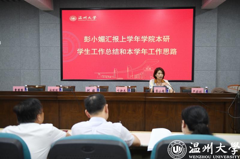 彭小媚汇报上半年学院本研学生工作总结和本学年工作思路。她从上一学年学院思政工作取得的成效、工作过程中的困惑以及工作思路三个方面展开。她总结到,2021-2022学年是学院快速发展的一年,学院坚持立德树人的根本任务,紧扣五育并举的育人方针,坚持分层分类管理理念,深化“博爱雅艺”师范气质等人才培养目标,着力打造“活力思政”“红色思政”“务实思政”“实力思政”四个思政特色,各项工作取得丰硕成果。面对“如何将00后大学生个性化的需求与思政工作共性化发展相统一”“如何将人才培养质量与学生生源质量相匹配”“如何解决学生在考研考编等高质量就业工作中呈现的系列问题”“如何在四个专业均为国家一流专业背景下保证人才培养质量”等困惑,强调思政工作者在做好学生工作的同时,要不断注重服务提升人才培养质量。本学年工作思路为“两手抓、两手都要硬”,即一手抓思政工作的强基固本工作,着力强化思想政治教育,特别是意识形态教育管理;一手抓思政工作助力提升人才培养质量工作。
