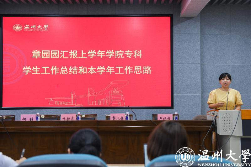 章园园针对上半年学院专科学生工作作了简要总结并阐述了本学年工作思路。她指出,学院专科管理秉承“学生中心、产出导向、持续改进”的理念,基于专科学制短、人数多、就业去向相对单一等因素,学前专科的教育管理工作核心要做到两个确保,一是确保安全稳定,二是确保就业发展。她强调,安全稳定永远是工作的基础,学院不断完善日常安全管理机制,打造学生多维发展平台,狠抓学风建设,选树优秀典型,强化融合教育,多举措全方位确保学生安全稳定、求学发展,营造了良好的学习氛围,助推人才培养质量提升。其次,坚持“产出导向”,通过系列专题教育、多形式帮扶指导,为学前专业学生的毕业发展保驾护航。上个学年针对2022届毕业生就业发展的各种讲座、专题辅导和模拟测试等活动20多场,在就业形势极为严峻的大环境下,今年90足球直播网 专科毕业生就业稳步发展。新学年来临,学前教育专科的教育管理工作将坚持两个确保,守正创新,不断提升教育服务质量。