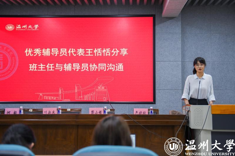 辅导员王恬恬作“班主任与辅导员协同沟通”主题分享。她从三个方面探析了辅导员与班主任在学生管理方面的协同沟通工作。一是关心学生,引导个性发展。二是管理班级,打造特色集体。三是积极展示,参与校院比赛。