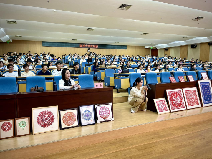 “红色剪纸上四个祝福的字,中间是个铜钱,有‘太平’还要有钱,就是太平钿,是老百姓对于生活最美好的祝福。”11月9日,85岁的省级非遗太平钿剪纸传承人柯娟娥走进温州大学的课堂,通过“线上+线下”共研共学的方式,带领1000多名学生感受指尖上的艺术传承。