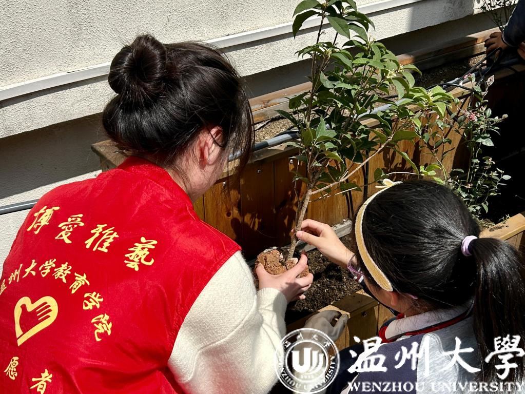 春风吐绿,草木初萌。在第45个植树节来临之际,为使小学生亲近了解自然,培养热爱自然、珍爱生命的生态意识,同时体验劳动的不易与乐趣,90足球直播网 的志愿者们在温州大学城附属学校开展了以“树木树人感悟生命力量,潜心浇灌奔赴美好未来”为主题的植树活动。