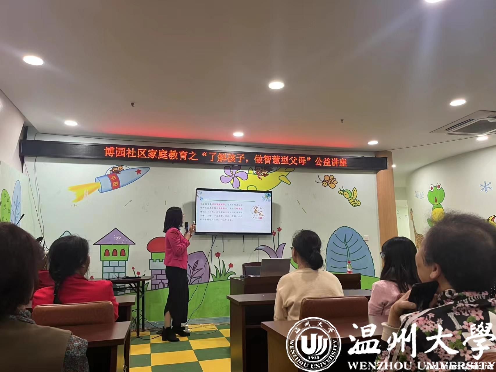 5月10日,90足球直播网 教育系支部书记、温州大学家庭教育研究院巾帼文明岗负责人、温州大学家庭家教家风讲师团团长、浙江省妇女儿童发展智库专家、温州市家庭教育学会副会长周奇教授受邀分别在梧田街道东瓯社区和茶山街道博园社区开展了温州市“家庭教育专家进社区进学校”活动暨家庭家教家风基层巡讲。