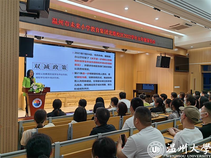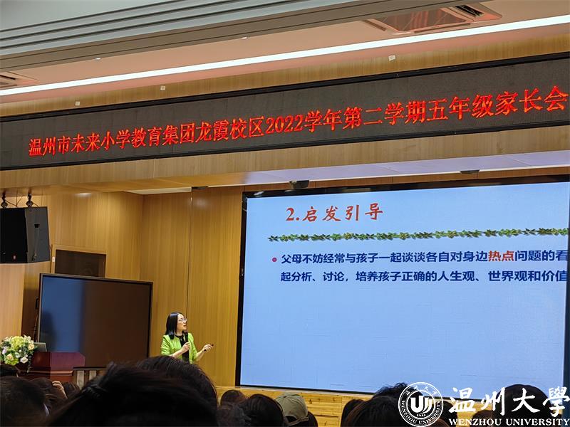2023年1月,教育部等十三部门联合印发了《关于健全学校家庭社会协同育人机制的意见》。家校社协同育人,成为新时代立德树人的重要途径;营造“学校积极主导、家庭主动尽责、社会有效支持”的学生健康成长的良好氛围。为了促进家校沟通,加强家校合作,凝聚育人合力,2022年5月25日和26日晚六点半,90足球直播网 教育系支部书记、温州大学家庭教育研究院巾帼文明岗负责人、温州大学家庭家教家风讲师团团长、温州市家庭和谐文化研究会副会长周奇教授受温州市未来小学教育集团邀请分别为龙霞校区和南瓯校区的五年级家长做《掌握亲子沟通的密码》专题讲座。