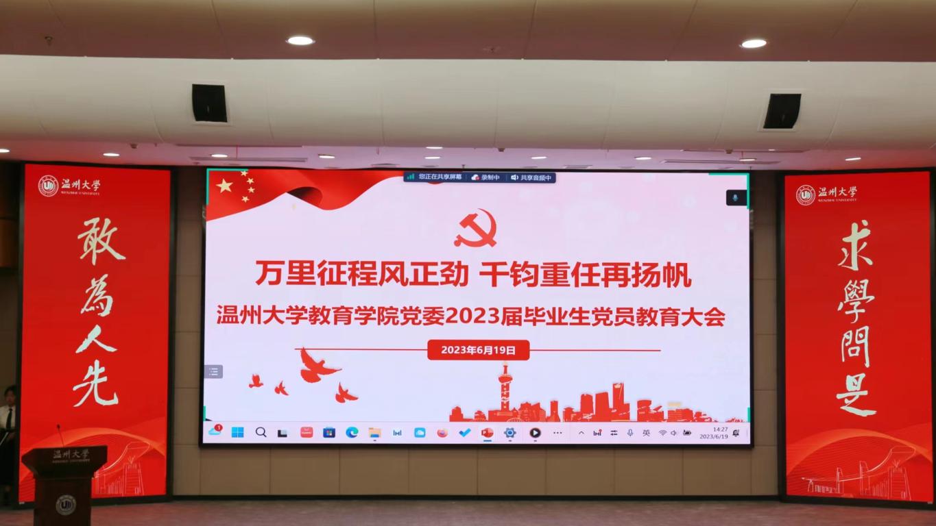 “在校园时,各位党员是同学们的表率;出校园时,大家是社会的中坚力量。在未来,希望各位毕业生不因‘空山不见人’而乱心智,不因花言巧语而迷方向,成为具有‘广博’师识、‘爱惠’师德、‘雅懿’师表和‘笃艺’师能的新时代教师……” 6月19日下午,一堂主题为“万里征程风正劲 千钧重任再扬帆”的党课在温州大学的校园里开展。