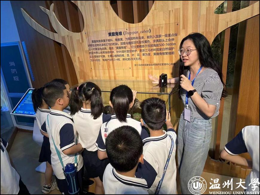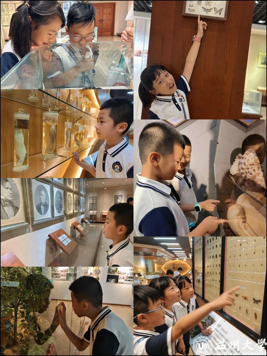 小学生们首先来到了生命与环境科学学院的动物标本馆,在一罐并不起眼的软体动物标本面前,讲解员姐姐停下了脚步,拿起了它并向求知若渴的孩子们介绍:“这个标本呀,虽然看起来不怎么样,但吃过的人都知道它非常可口呢!我们温州人叫它蒜泥冻。”孩子们若有所思地点点头,欢喜的眼神中带着几分不可思议。