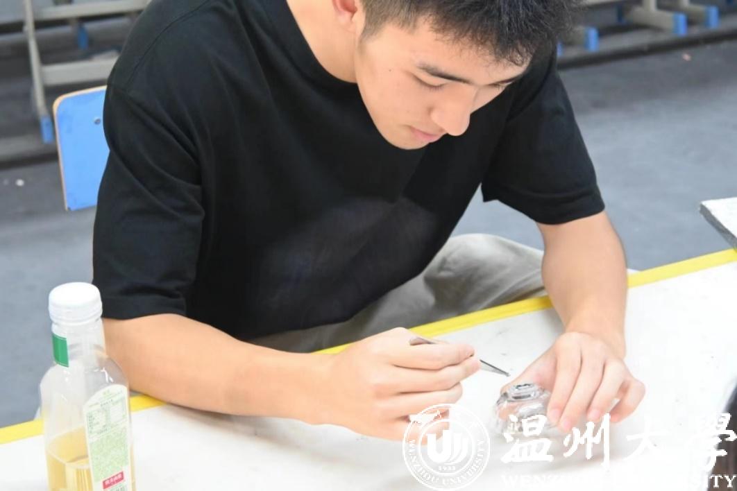 实践团成员体验贝母螺钿工艺品 温州大学供图