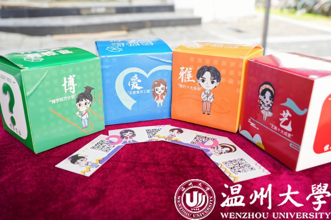 “博爱雅艺”盲盒任你抽,条条大路通罗马。新生现场抽取“盲盒”入学大礼包。它可以是“博”,同学们扫码即可从精心设计的书单中挑选一本自己最感兴趣的书籍;它可以是“爱”,这份大礼的幸运儿享有与优秀的学长学姐一对一帮扶学友计划;它可以是“雅”,小萌新们现场参与亚运知识竞答获取亚运吉祥物,学习亚运礼仪当好东道主;它也可以是“艺”,激励新生们提前参与师生工作坊、各项创新创业专项目团队,通艺创新,才艺全面,习得教学能力与素养。