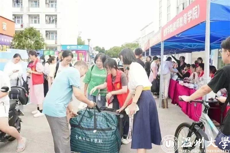 志愿者积极引导新生有序报到,分工明确,热情洋溢。志愿者们化身“大力士”,帮助新生们安顿行李。